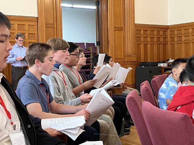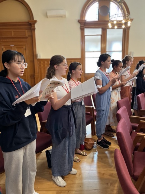It was a wonderful beginning of August here at CISM as we welcomed nearly 80 young singers to campus for a 5-day chant camp. Students sang morning prayer, had intensive rehearsals preparing 5 days of sung Masses, and sharpened their vocal technique and solfège skills in rehearsals. Snack breaks and lunchtime games punctuated the days, and afternoons were spent learning about the pipe organ, the names of neumes, key signatures, and doing some composition.